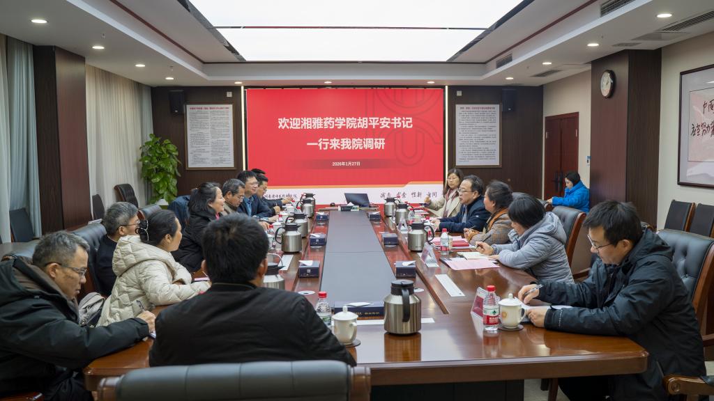 在拔尖创新药学人才培养及药物研发等方面的重要贡献,介绍了湖南省中医药研究院的历史变迁以及在中药传承创新、服务地方经济社会发展方面发挥的重要作用,希望双方围绕培养高层次人才、促进医学教育改革、推动学科交叉融合和有组织科研合作等深化交流,携手推动湖南乃至全国中医药学科发展。双方初步达成了深化合作的意向。